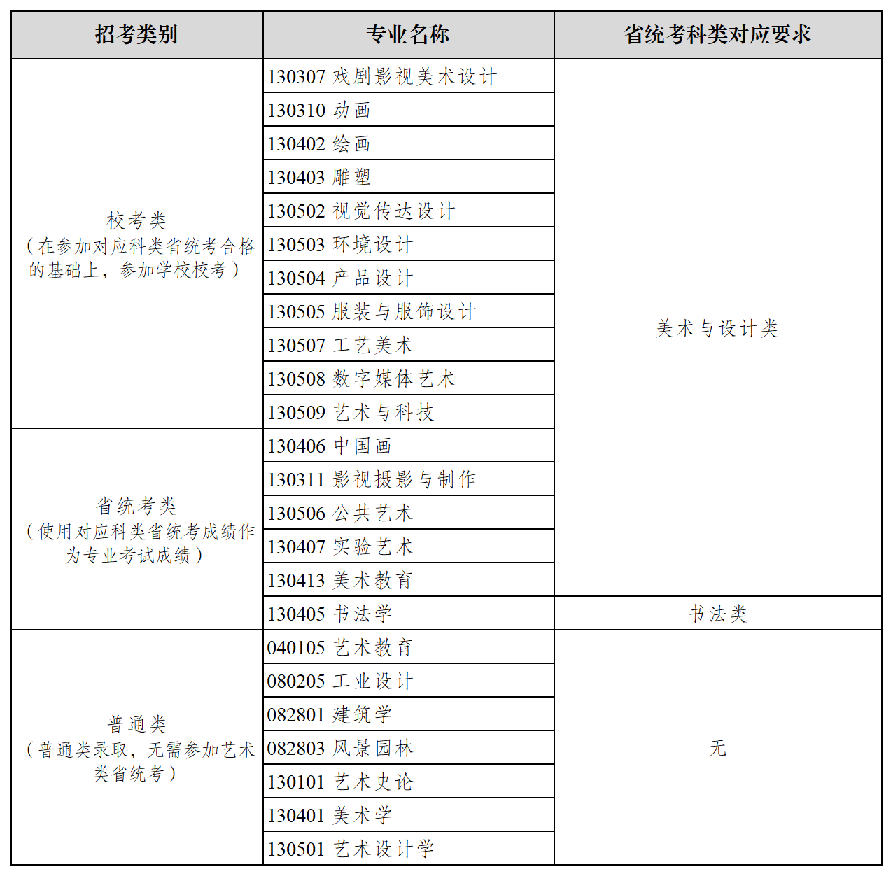 四川美术学院关于2026年本科招生专业、类别及省统考科类对应要求的公告
